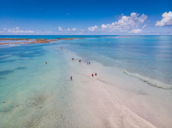 A poucos metros do Tambaqui Praia Hotel, quando a maré atinge níveis baixos (abaixo de 0.3), o mar recua e revela um banco de areia e corais incrível.